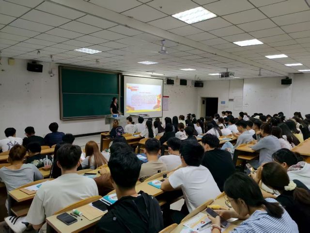 伴随着热烈的掌声,李老师登上了讲台开始这次讲座。“新学期就要有新气象”李老师对着大家讲到,并将本次讲座分为四个“新”部分,分别为新环境,新朋友,新规矩与新开始,寓意着大家将在“阿信”放肆地野蛮成长,开启人生的崭新篇章。
