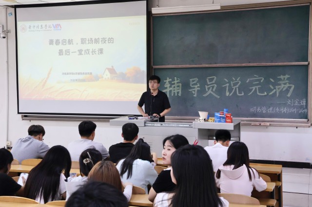 为助力财务管理(专升本)2401-2404班的学子们前瞻规划职业未来,夯实职场竞争力基础,淬炼商学院·国际商学院的刘金璋老师于6月11日17:00在2号教学楼201教室成功举办了主题为“青春启航,职场前夜的最后一堂成长课”的辅导员说完满活动。辅导员刘金璋老师立足长远发展视角,为...