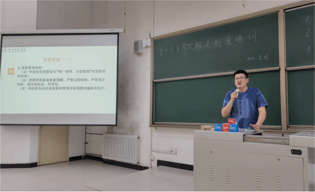 接着靳浩老师将财务预算、工资发放、个税扣缴、经费开支报销等政策和规定以严谨又不失风趣的形式传递给大家,使老师们充分认识到财务处工作的重要性和严谨性,它不仅要保障学校教学和各项事务开展的正常运转,同时还要保障全体学生在校顺利完成学业以及教职工薪酬福利的按时发放。我们老师必须严格执行财务规章制度,合理有效使用经费,规范报销流程,使有限的教育经费真正用到提高学校教学质量和事业发展上,真正使广大师生乐学、乐教。