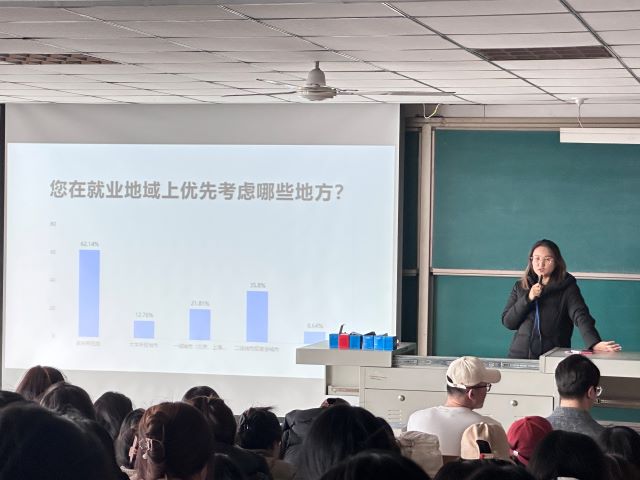 通过调查问卷统计结合PPT宣讲的方式,向同学们科普作为准毕业生时;同学们应该明确自己的职业目标,在选择职业时,应该根据自己的兴趣、能力和市场需求来做出决定。同时,要注重提升自己的职业技能和素质,为未来的职业发展做好准备。在校大学生更应该学会正确分析自己的长处与短处,面对目前的就业形势应当如何转变就业观念等多个方面的问题。随后,鼓励学生们应怀有持之以恒的学习态度,对待工作踏实肯干,执着追求梦想。