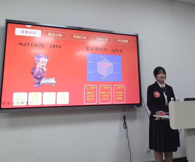 在成长赛道中,入围的学生展示了他们对于职业目标、行动成果和目标契合度的深刻理解,他们从自我认知、职业环境分析、职业目标确定、评估与调整等方面,全面展示了自己的职业规划。就业赛道的入围学生则从个人求职意向和职业准备情况两方面进行主题陈述,展示个人的综合素质、岗位能力和发展潜力。