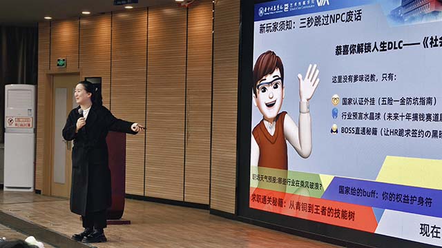 刘媛媛老师化身“政策解读官”,以“山西省就业创业扶持政策全景图”为框架,系统解析求职补贴、三支一扶计划、职业技能提升行动等专项福利。创业扶持政策同样亮点频现:刘老师以非遗盲盒开发、景区沉浸式剧本杀等创新案例为例,引导学生将视觉传达、数字媒体等专业优势转化为创业动能。冯雅琳同学听后,感慨颇深,她表示:“我打算为家乡农产品做一个包装,将当地文与农产品完美结合,我的专业为家乡发展助力”