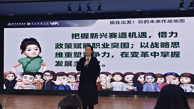 活动开场通过对行业趋势解析与新兴领域案例分享,帮助学生探索职业机遇。刘媛媛老师以趣味PPT和行业大数据为工具,为同学们深入拆解就业形势。针对视觉传达设计、数字媒体艺术以及环境设计三个专业就业方向进行讲解,对平面设计、影视制作与交互、家装设计等就业岗位展开描述,让同学们了解自身专业的优势与就业前景,明确未来职业发展的方向,让大家能在未来就职的岗位或行业中保持清醒,朝着自己的目标不断奋进。