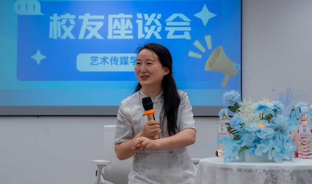活动以“凝聚校友力量,共探行业发展”为核心展开。艺术传媒学院就业创业主任刘媛媛首先致欢迎辞,热情欢迎校友返校,并详细介绍学院近年在学科建设、人才培养等方面的成果,强调校友是母校发展的坚实后盾。随后进入多元交流环节:校友李逸泉分享从校园到社会的成长故事,讲述了自己从职场到考公的经历,并分享了自己的经验,告诫同学们应对自己的未来进行职业规划,字里行间满是对母校的感恩以及对后起之秀的欣赏;股东王垚结合行业趋势带来主题演讲,以实战案例拓宽师生行业视野,两人均鼓励学子珍惜时光、勇敢追梦。此外,校友与教师围绕“跨界融合与创新发展”开展圆桌讨论,从艺术与科技融合、传媒创新模式等角度碰撞思维火花,现场互动环节中,众人就职业规划、实习就业等话题热烈交流,气氛温馨活跃。随后,在学院老师的陪同下,校友们开启了校园参观之旅。漫步在焕然一新的校园中,踏入艺术楼,曾经挥洒汗水的创作空间、熟悉的教学场景,勾起了无数求学回忆。走进非遗博物馆,感受传统文化与现代艺术的交融之美;看着学院的快速发展与创新成果,校友们纷纷感慨万千,为母校的巨大变化感到由衷的自豪。