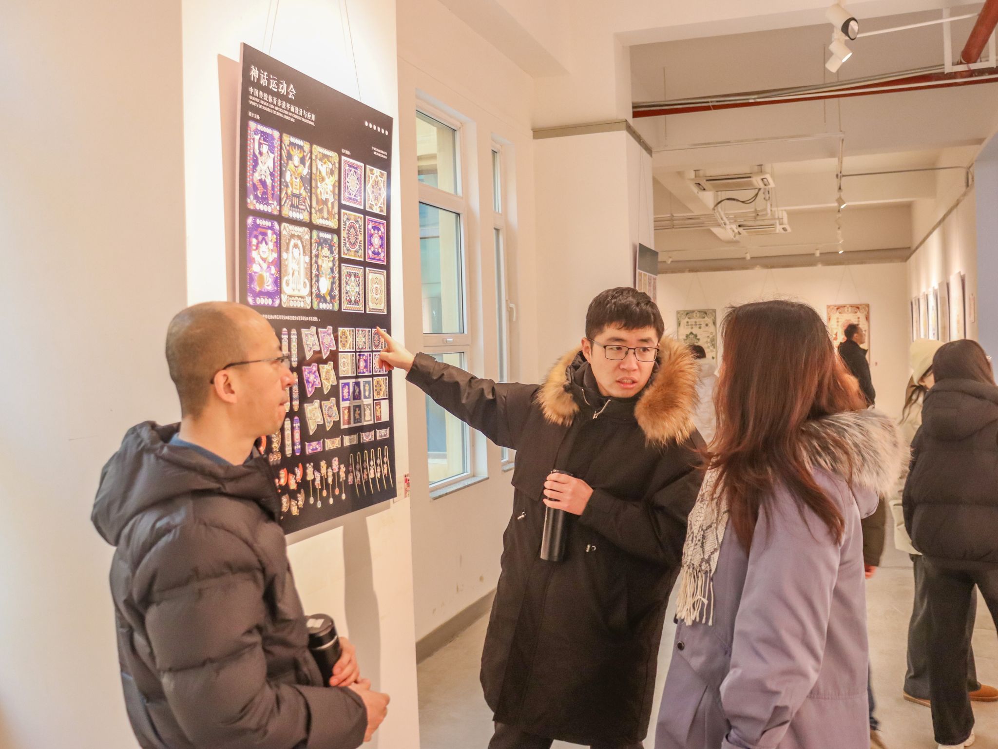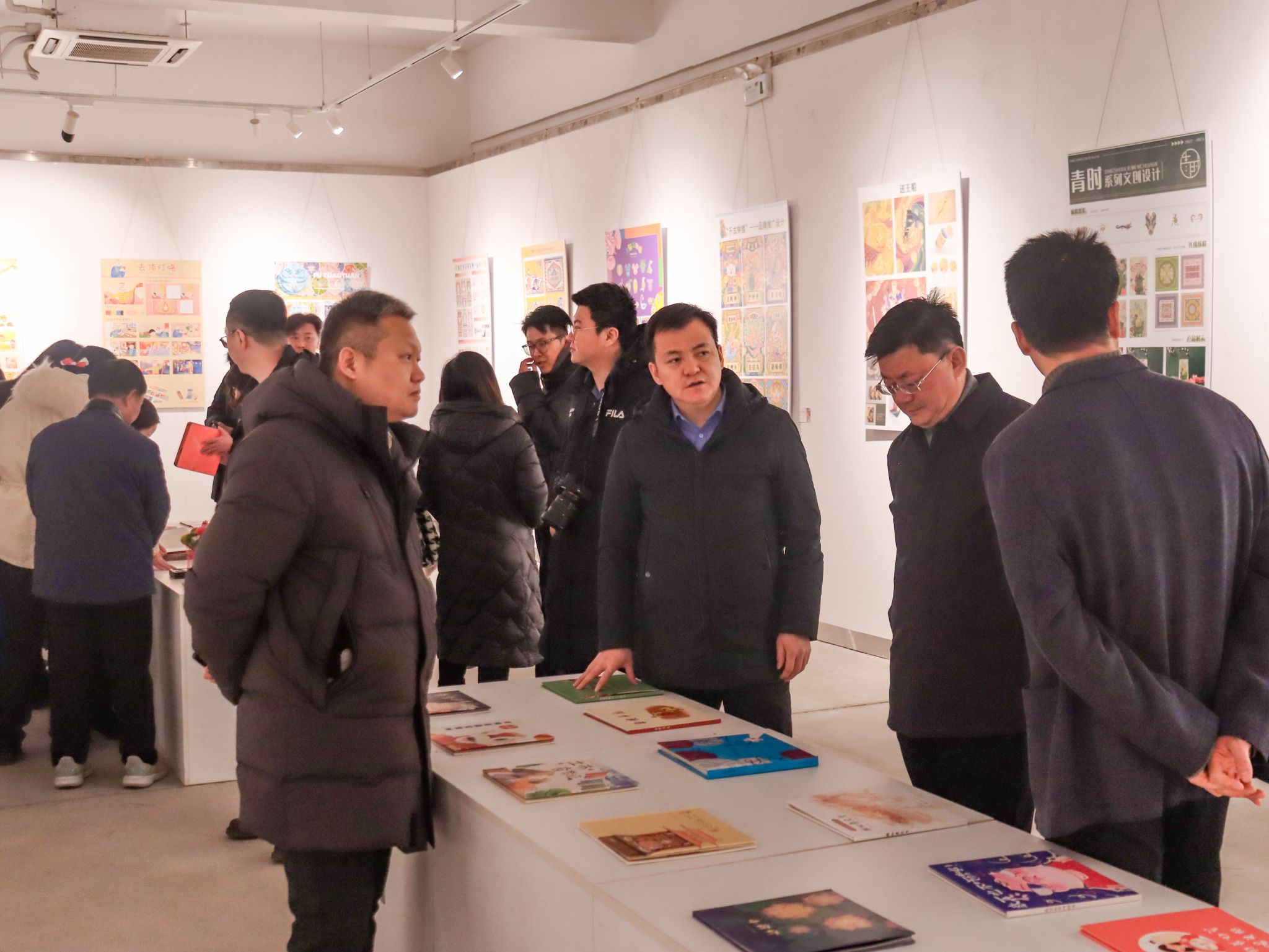 会后,盛卓立院长与艺术传媒学院教师们观摩由太原理工大学艺术学院举办的“绘素采遗”山西非物质文化遗产视觉设计作品展。本届山西非遗视觉展共涉及绘本、包装、可视化等多个项目的作品。意义深远的绘本设计,以斑斓笔墨勾勒文化底蕴;别出心裁的文创作品,把寄情于怀与传统文化相融合。教师们一边欣赏一边讨论,并与参展的专家进行双向交流,共同探讨非遗在艺术教育中的应用与传承方式。
