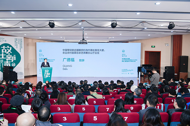 中国常驻联合国粮农机构代表处首任大使、农业农村部原总农艺师兼办公厅主任广德福在开幕致辞中指出,中国广袤大地上的农耕文明构成了世界上独具特色的一道风景线。乡村不仅体现了生态美学的智慧,同时还是中华传统文化鲜活的传承载体。艺术创作需深深扎根于民间土壤,乡村建设的美学理念亦应源自民间智慧。一切对美的挖掘展示和创造都要以农民为中心,把握农民对乡村发展的不同需求。这样艺术乡建才能各具特色、各美其美、美美与共,让乡村成为农民群众安居乐业、幸福生活的美丽家园。