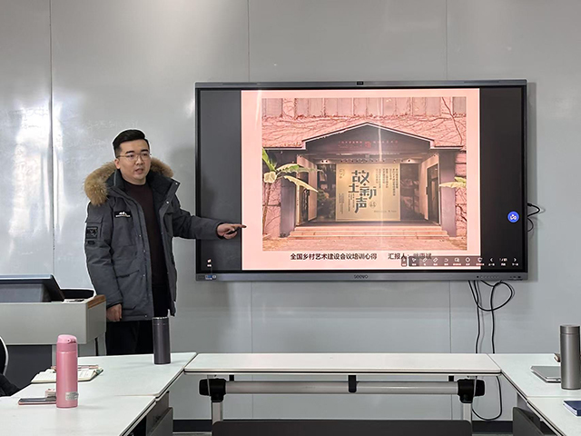 环境设计教研室武惠斌老师向与会嘉宾转训参会心得。他提到此次论坛与展览展现和探索全国各艺术设计院校乡村艺术建设中的传承与创新路径,展现在传统的乡土社会到现代乡村转型的过程里,故土家园中那些经过艺术赋能而发生巨变的场景和生活,诉说新时代的乡村叙事,从多角度、全方位展现了当下高校联盟在乡村艺术建设中的成果与经验,为与会人员提供了宝贵的借鉴与启示。