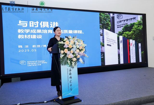 江南大学设计学院院长魏洁教授以《与时俱进·教学成果培养与高质量课程、教材建设》为题,分享了学科建设的实践经验。她提出,江南大学依托地域文化资源,构建“设计+科技+产业”交叉学科体系,其课程设计始终紧扣社会需求,连续五次斩获国家教学成果奖。以《图形设计》课程为例,魏教授详细阐述了“理论-实践-创新”一体化的教材建设路径,强调从基础技法到创新思维的递进式培养,为高校课程改革提供了可借鉴的范本。