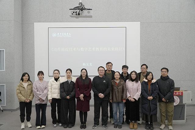 11月19日下午,由名师课堂办公室主办、艺术传媒学院承办的“动捕技术与数字艺术教育的未来路径”专题学术讲座在万画影城6号厅(201教室)顺利举行。上海青瞳视觉科技有限公司教育事业部市场总监杨玉龙先生担任主讲人,艺术传媒学院教学副院长孙琪主持讲座,学院动画教研室、数字媒体教研室全体教师及100余名学生现场聆听了本次分享。