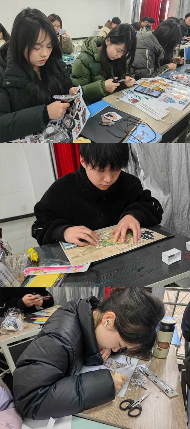 本次课程展示活动还设立了制作手工古风书灯环节,学生可以亲手尝试书籍设计,体验设计的乐趣。此次活动同学们不仅是表达能力的锻炼更加深了对书籍和文化的理解和热爱,而且还锻炼了动手能力,感受到了团队合作的力量和创造的乐趣。