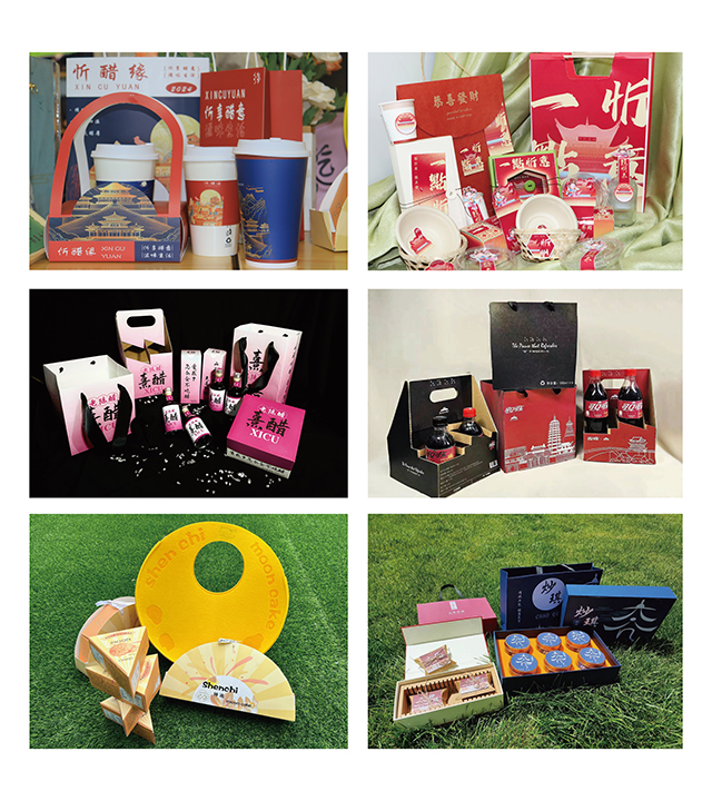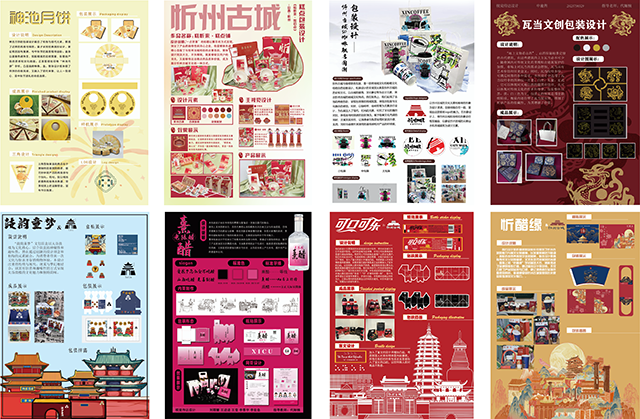 在展览中,可以看到传统非遗与现代国潮风格的精彩碰撞。学生们深入挖掘了中国丰富的非物质文化遗产资源,如太谷鼓楼、忻州古城、乔家大院、山西老陈醋等,并将其巧妙地融入到包装设计之中。同学们充分挖掘这些非遗元素的内涵,将其与现代设计理念相结合,打造出具有时尚感和文化内涵的包装作品。