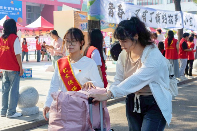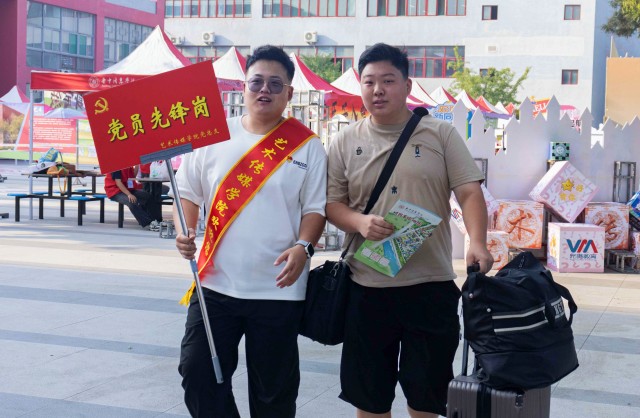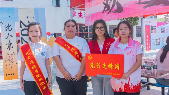 亮身份、树形象、作表率、讲奉献。在迎新现场,党员志愿者们分工合作,为新生和家长提供暖心服务。他们佩戴党徽,身披红色志愿服务绶带,学生党员们用热情的笑容和亲切的话语迎接每一位新生的到来,形成一道亮丽的风景线。在校园内,他们贴心地为新生搬运行李;在咨询服务处,他们耐心地为新生和家长解答入学流程、宿舍分配和安全须知等相关信息。校园中,党员志愿者们用无私的奉献为鲜艳的党旗增添光彩,那一抹抹“志愿红”诠释了党员们“用心用情用力”的志愿服务理念。
