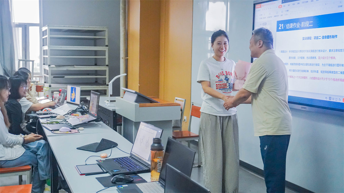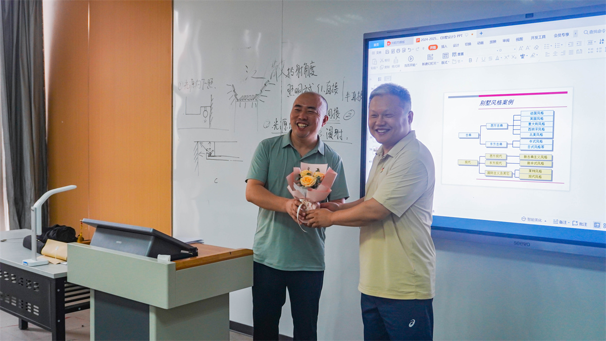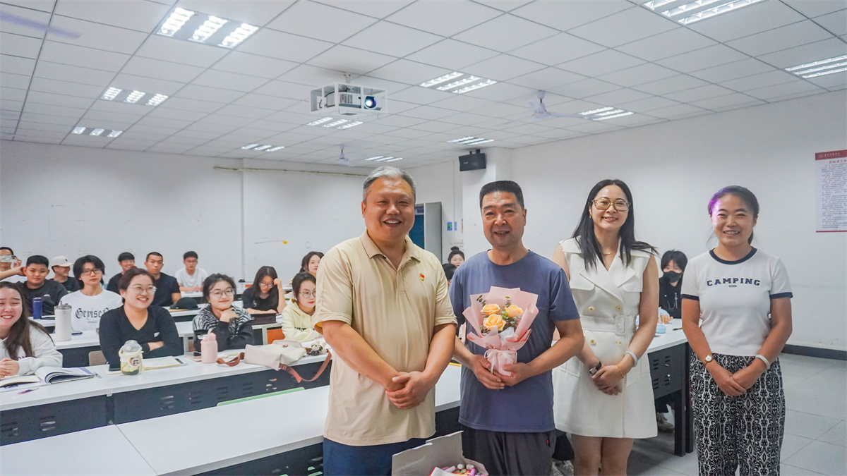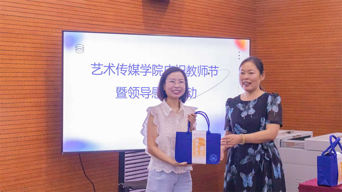 9月10日教师节,在课堂的间歇,艺术传媒学院领导班子一行亲临教学工作一线,组织与上课的学子们,共同为奋战在三尺讲台的老师们献上节日的祝福和慰问。院长盛卓立代表学院为教师们亲手献上鲜花和祝愿,感谢老师们为学院发展作出的积极贡献,向在场的师生们传达学校关怀:“教育是国之大计、党之大计,我们要进一步大力弘扬教育家精神,加快建设教育强国。老师们在教育领域作出了突出贡献,希望教师们继续以满腔热忱投身教育,以精湛的教学点亮学生理想之光,以高尚的情操塑造人民教师的光辉形象,以骄人的业绩成就自我人生价值。坚持‘四个面向’,始终在一线服务教育学生,在课堂教书育人,祝大家教师节快乐!”