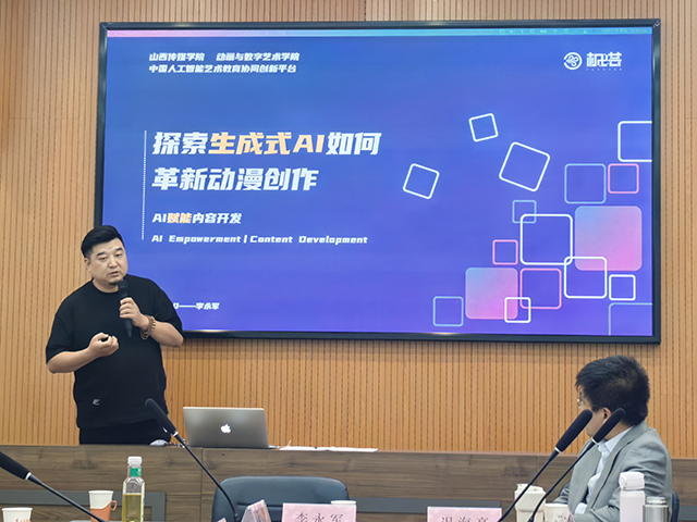 山西枫芸文化传媒有限公司李永军总经理以“探索生成式AI如何革新动漫创作”为题,阐述了随着生成式AI技术的不断发展和应用,动漫创作将实现更加智能化、个性化和高效化的转变,并能通过深度学习和数据分析,优化剧情设计和角色塑造的新形式。