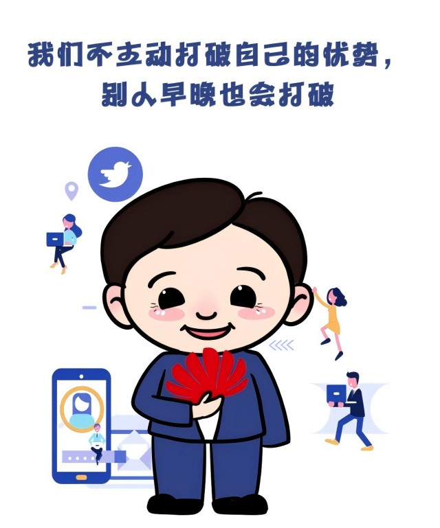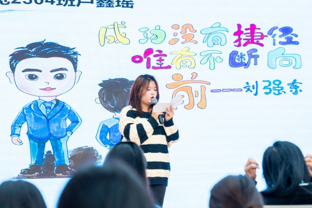 “马爸爸”坚韧不拔的毅力和不怕吃苦的创业精神使我深有感触,我通过卡通化的处理,体现了他具有较高辨识度的外形。人物形象面带微笑,向大家挥手,设计理念的目的主要是为了更好地传递出面对生活中的挫折和困难时要保持积极乐观的态度,不逃避困难。”来自动画(专升本)2405班的吴昕霏说道。