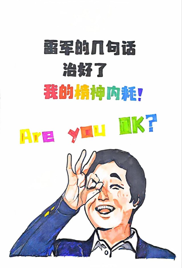 “真是没想到大咖阅读还能和我的专业结合起来”来自视觉2401班的李雅斌同学一边说着一边指着一幅雷军的IP形象的作品说道“Are you OK?来源于雷军在印度举行的小米手机发布会,由于英文有口音而成为网友口口相传的热梗。作品中蕴含的大咖们的创业故事以及比较知名的梗,一下就拉近了我和大咖们的距离,有了亲近之感。