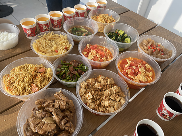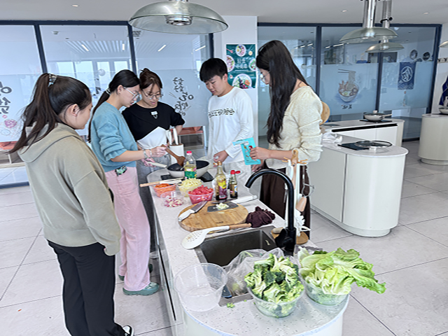 一道道美食在师生们的共同努力下接连出锅,接着就到了品尝美食阶段。师生们围坐在餐桌旁,桌上摆满了大家亲手制作的佳肴。大家你一言我一语地夸赞着菜品的美味,饶有兴趣地分享着烹饪过程中的趣事和心得。现场其乐融融,好似先前忙碌的疲惫早已烟消云散,只余下这满室的欢声笑语和浓浓的情谊。