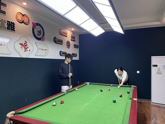 在白燕书院的室内台球室,一场别开生面的师生交流活动正在进行。尹文倩导师先向同学们介绍了台球运动的基本知识和规则。她轻松幽默地讲解着,让原本对台球不太了解的同学也迅速产生了兴趣。随后,导师和同学们开始分组进行台球比赛。在休息间隙,尹文倩导师还会和同学们围坐在一起,分享自己的人生经验和学习方法。她倾听同学们的心声,为他们解答学习和生活中遇到的困惑。同学们在这种轻松愉快的氛围得到了放松,更在潜移默化中受到了尹文倩导师的教导和启发。通过台球运动,尹文倩导师成功地将知识、技能和人生哲理传递给了同学们,让他们在娱乐中收获成长。
