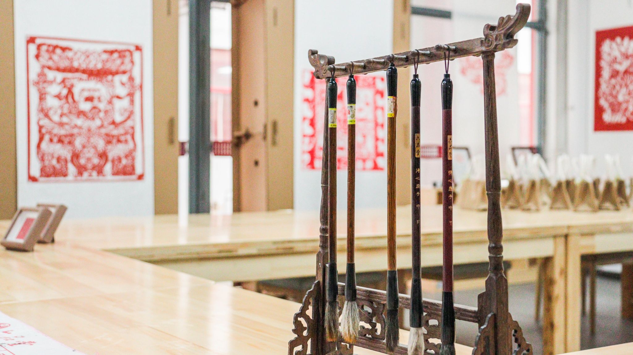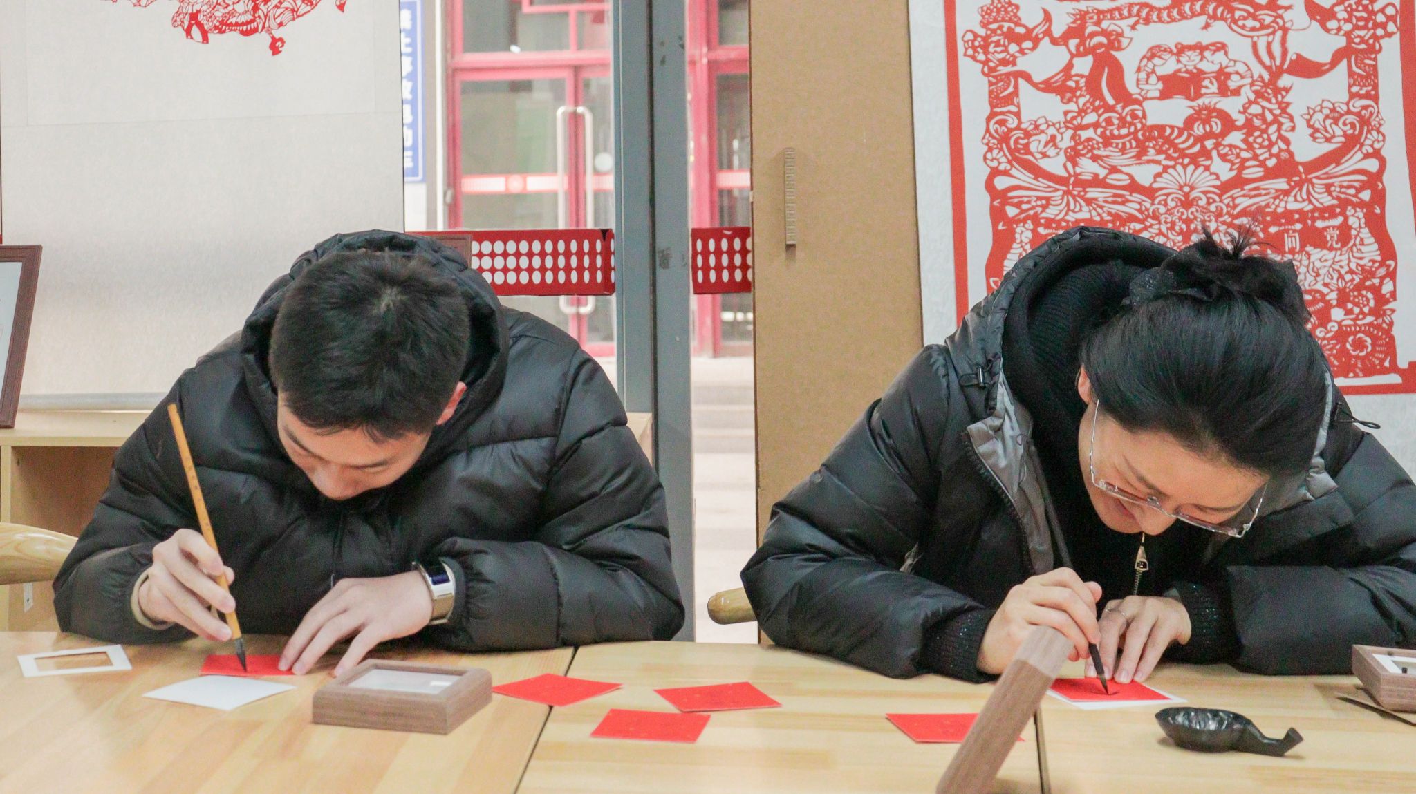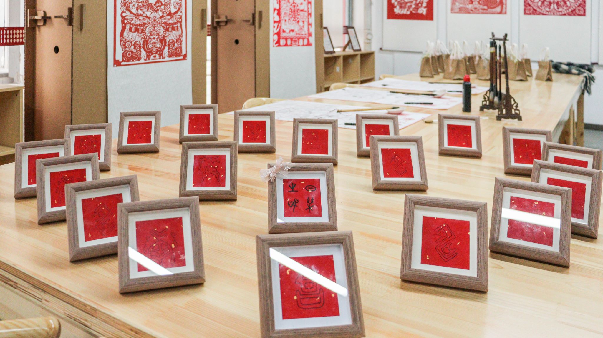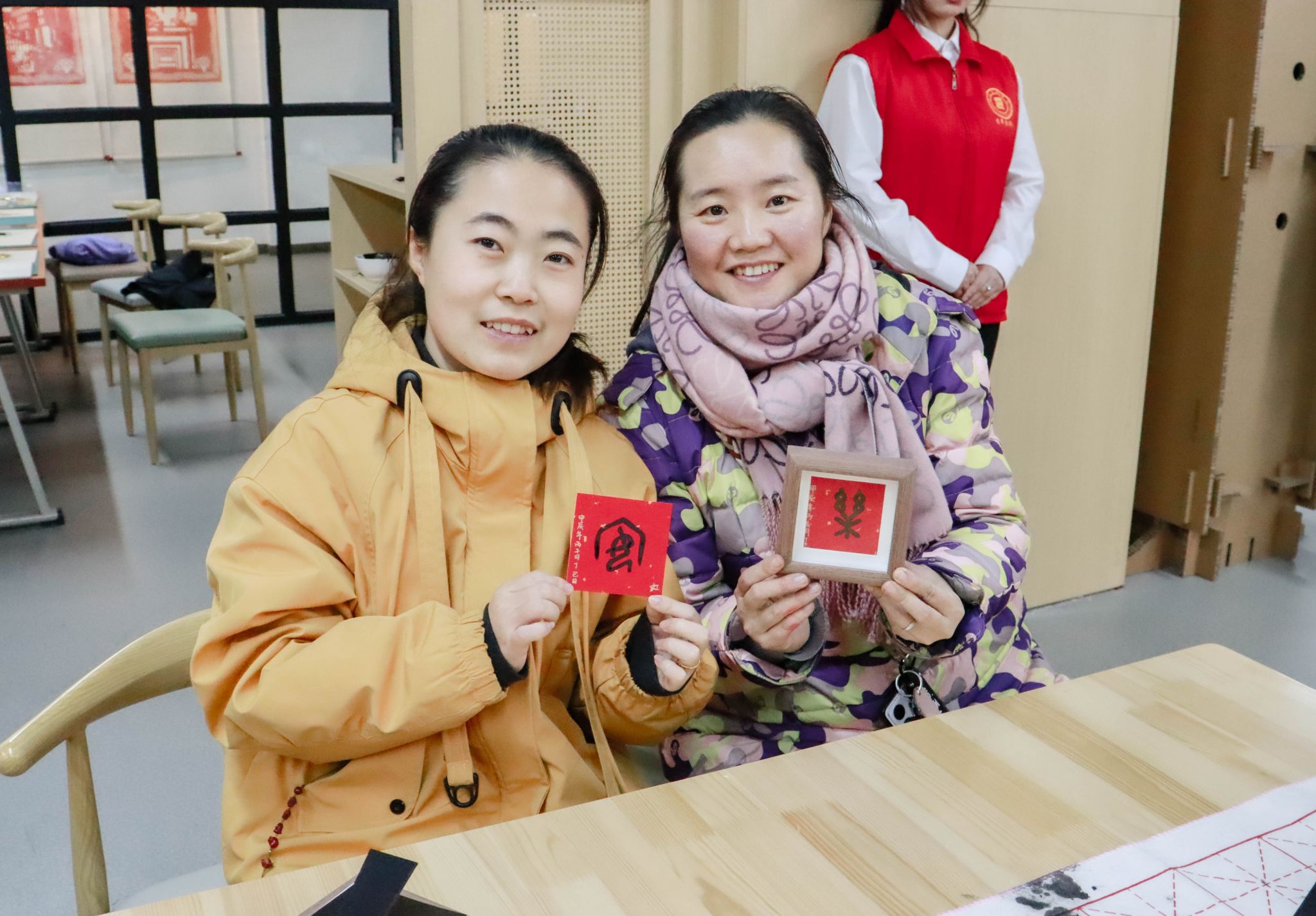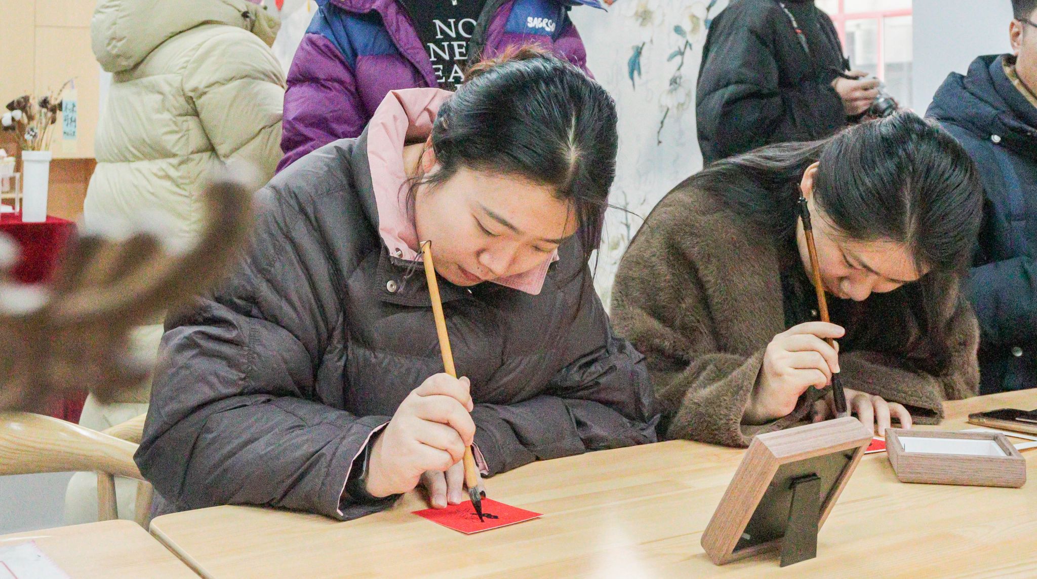 在逸趣横生的甲骨文书法工坊,洒满金粉的红纸等待着雅士们的挥毫,倾听甲骨文的奥秘。平日里工作都认真到极致的老师们,此时此刻小心翼翼地勾勒出一个个古朴典雅的甲骨文,一笔一划间,流淌出无尽的艺术激情与文化共鸣。当一幅幅完成的作品被装裱,千年遗韵定格,借古拙之形,抒今朝之意,宛若时间的见证,承载着亘古不变的情感与智慧。