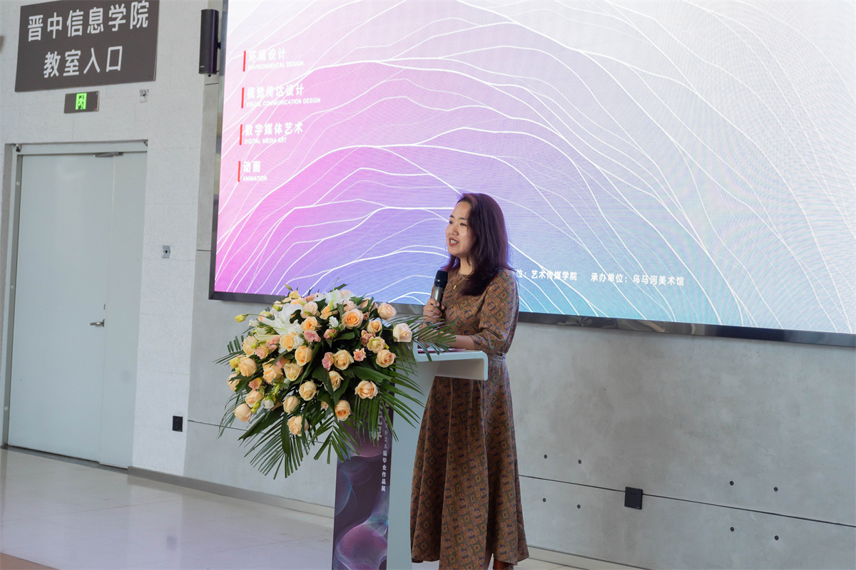艺术传媒学院院长盛卓立主持开幕,本届展览凝聚着艺术学子四载求索的智慧灵光,更诠释着“生长无界”的深刻命题,专业协同突破学科边界,充分彰显了学院“创新引领、跨界融合”的育人理念。副校长常彦阁在致辞中指出,展览不仅是青年学子艺术才华的绽放,更是学校应用型艺术人才培养体系的生动实践。山西大学美术学院武小明教授分享发言,对我校大力支持学生专业发展以及特色育人场域建设成效表达赞许。