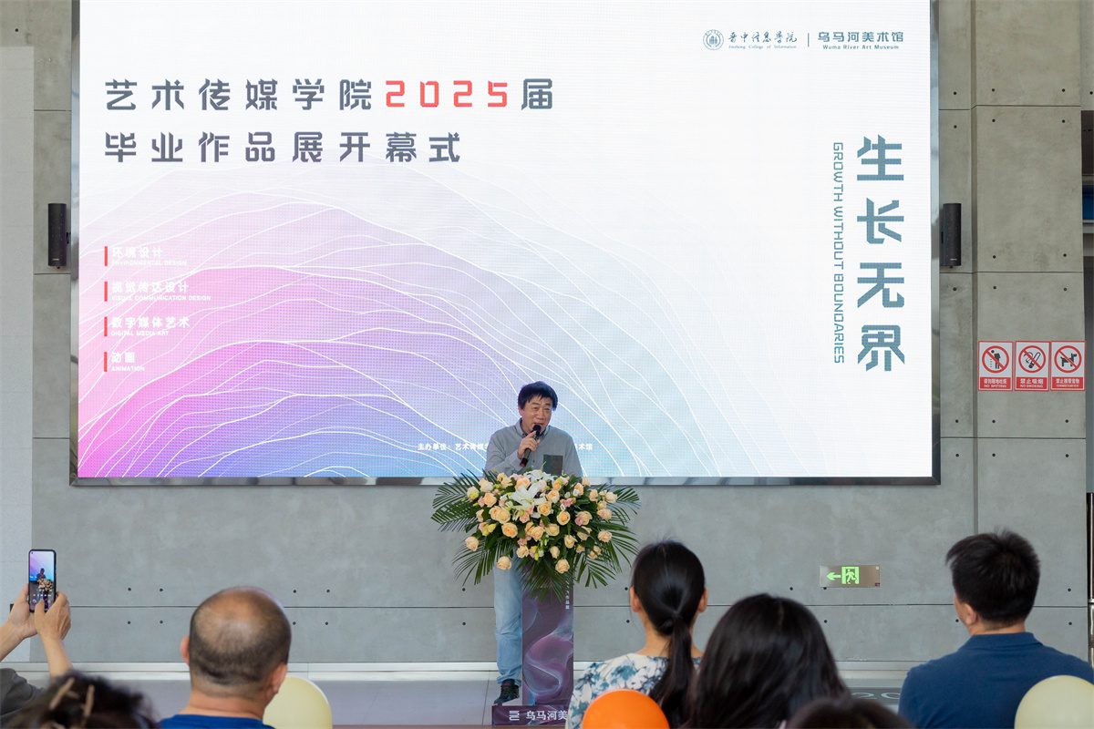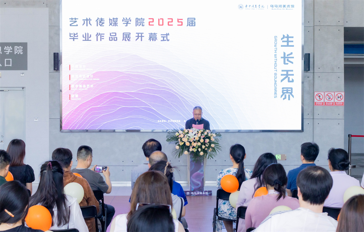 六月芳华,万物并秀,孟夏的清风携青春热忱拂过信院。6月4日,晋中信息学院艺术传媒学院2025届“生长无界”毕业设计作品展在乌马河美术馆璀璨启幕。展览汇聚数字媒体艺术、动画、视觉传达设计、环境设计四个专业百余件优秀学生作品,以多元媒介与创新视角,呈现了一场跨越现实与虚拟、传统与未来的艺术盛宴。晋中信息学院副校长苏琳、副校长常彦阁、山西大学美术学院武小明教授、陈俊教授、太谷区史志研究室武秀娟副主任、学校各兄弟学院同仁受邀莅临,与怀揣艺术梦想的2025届艺术传媒学院毕业生们共同出席现场。