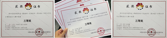 作品经过省赛国赛层层选拔,最终在国赛中荣获奖项,在参赛类别、获奖等级均再创佳绩。本次中国大学生计算机设计大赛中优异成绩的取得,这不仅展现了学生们扎实的专业技能和卓越的创新思维,也体现了优秀的团队协作能力和出色的表达能力。这次比赛对他们来说无疑也是宝贵的实践机会。