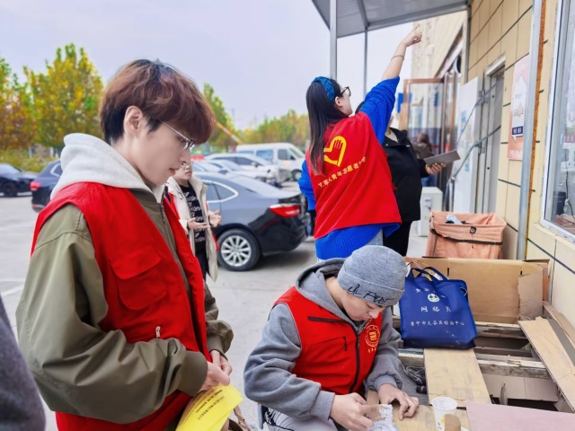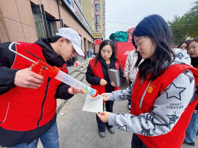 有的志愿者专注整理宣传资料,为后续宣讲做好准备;有的志愿者则站在社区建筑旁,抬手规划宣传物料的张贴位置。他们分工明确、协作有序,将“奉献、友爱、互助、进步” 的志愿精神转化为具体行动,在参与社区精细化治理的实践中,不仅为社区环境美化和信息传递贡献了力量,更在动手实操中深化了对社会治理的认知,以青春担当诠释了新时代大学生的责任与使命。