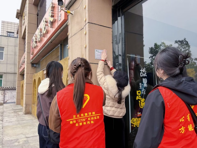 然而,任务执行过程并非一帆风顺。“我们刚拿出责任牌准备张贴,有的商户就皱着眉摆手说‘别贴别贴,我们这不许贴小广告’,当时还有点委屈。”二组志愿者事后回忆道。面对商户的误解,志愿者们没有气馁,而是耐心向商户解释:“阿姨,我们是晋中信息学院的志愿者,不是贴小广告的,这是社区统一要求张贴的‘门前三包’责任牌,能帮大家明确维护门前环境的责任,让咱们社区更干净整洁。”