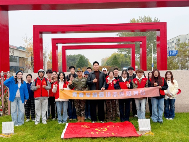 青春军旅宣讲团志愿服务队的志愿者们身着统一志愿服装,脸上洋溢着热情与期待。指导老师解育一首先强调了安全注意事项,随后简要动员并讲解活动任务。镜头前,大家眼神坚定,笑容灿烂,定格下即将投身志愿服务的青春瞬间。随后,志愿者们沿着规划好的路线有序出发,正式开启此次志愿之旅。