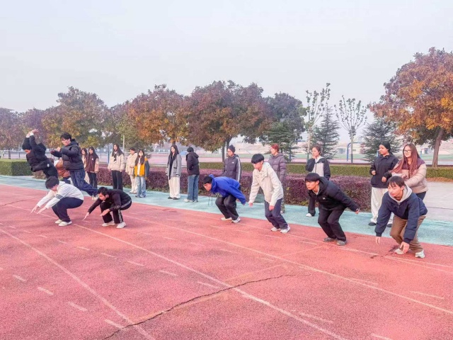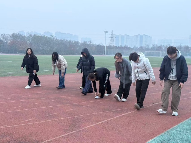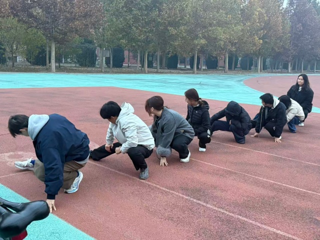 体能基础的差异从未消解训练热忱:有人矫正起跑姿态,膝盖的角度、摆臂的高度反复校准,在一次次蹬地与冲刺中突破速度阈值;有人练耐力跑时汗透衣背,额前的碎发被汗水黏住,却只是抹把脸、喝口水,短暂调整便重返队列;更有同伴间的技巧互授,跑得快的分享摆臂发力窍门,跳远稳的示范蹬地发力要点,成长的轨迹在互助中交叠。