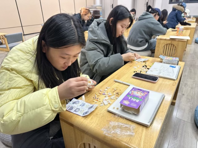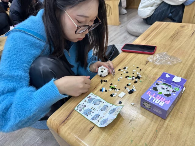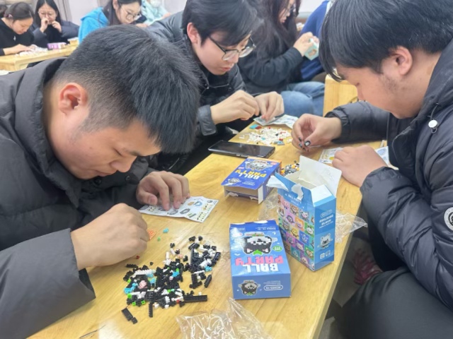 寒风渐起,创意飞扬,为进一步丰富课余生活的趣味性与多样性,帮助同学们在紧张的学业节奏中舒缓压力、调节状态、凝聚班风,2025年11月16日下午16:30至18:00于上河书院206竹林·围炉夜话,以“拼搭萌动物,玩转创意颗粒”为核心的班级特色活动。在拼搭过程中感受创意颗粒的无限魅力,班干部引导同学们记录作品与成长收获。在体验过程中让同学们打破个体孤立感,感受在集体协作中的温暖与成就感。