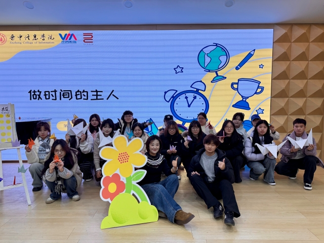 紧接着,“动作传声筒”游戏登场,6名同学仅靠肢体语言传递信息,一分钟的无声互动里笑声不断。大家直观感受到:信息传递的精准度与专注力息息相关,而高效利用每一分钟,正是破解大三“学业繁杂、目标模糊”困境的关键,恰如高老师说“合理安排时间,就等于节约时间”。