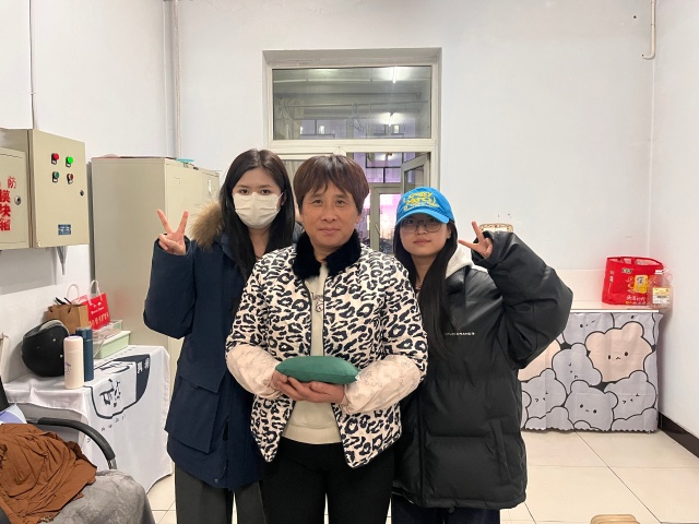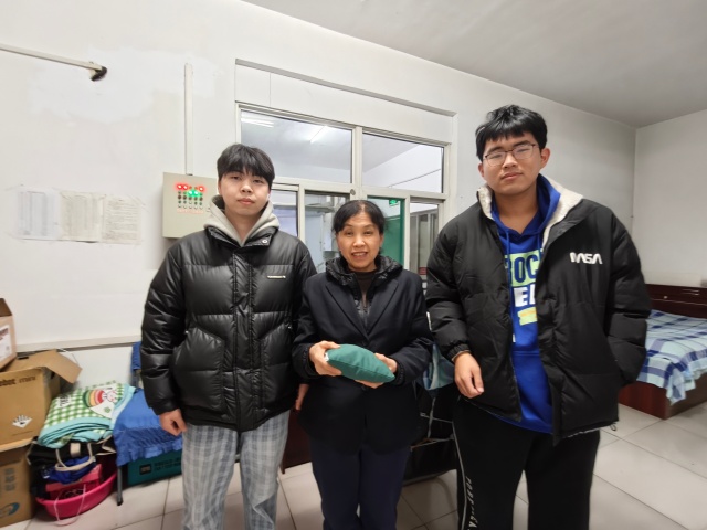 随后,大家拎着装满热敷袋的手提袋前往各宿舍楼。“张阿姨,这是我们亲手做的粗盐热敷袋,您平时值夜班总坐着,腰不舒服的时候敷一敷特别管用。”“李阿姨,这个袋子上的图案是我们专门为您画的,希望您喜欢。”当同学们把还带着余温的热敷袋塞进宿管阿姨手里时,阿姨们连忙接过,指尖触到温暖的瞬间,眼角都泛起了笑意。