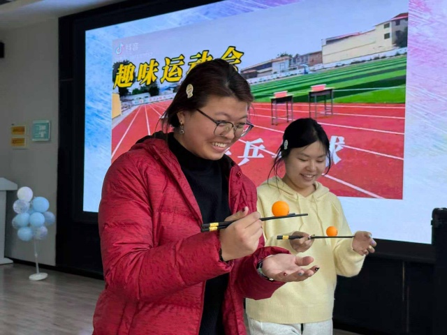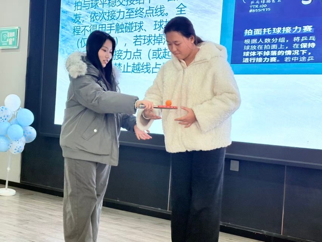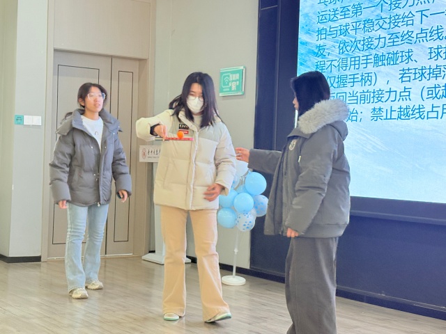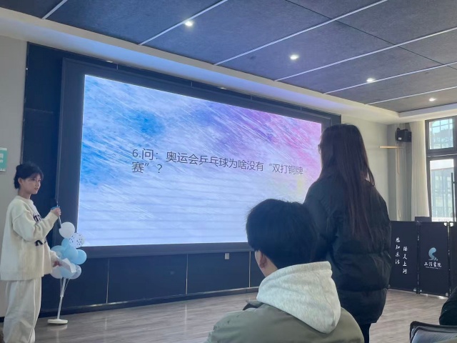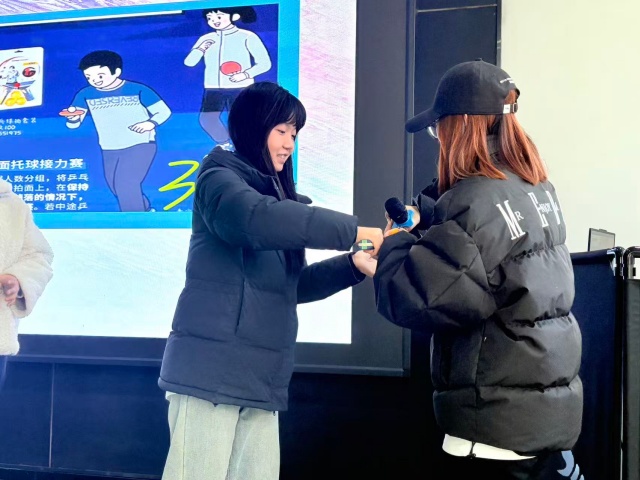 本次活动以乒乓球为纽带,环节环环相扣、寓教于乐。开场视频交织“乒乓外交” 经典瞬间与当代健身场景,迅速点燃氛围;主题讲解阐释乒乓文化价值与体育精神,趣味知识互动掀起抢答热潮,让同学们深化认知、铺垫情绪;后续乒乓球游戏聚焦巧动、耐力与技巧,引导大家在实践中感受国球魅力,在协作中凝聚集体力量,实现从认知到体验、个体到集体的层层深化。随着全场期待,活动正式拉开帷幕。