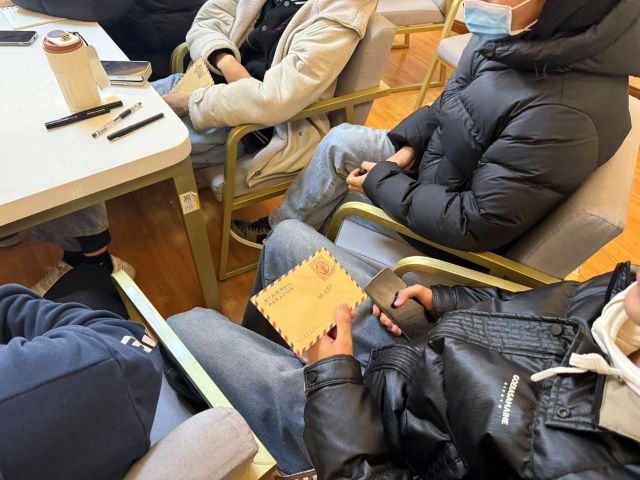 随即来到活动的高潮,同学们之间相互写信,可以写他的优点、写在生活中对他的感恩。同学们开始伏案提笔,写完后,主持人将信件封存,转交给收件人。本次活动,为学生提供专属书写空间,将日常未说出口的感谢、欣赏与温暖转化为文字,打破沟通隔阂,让学生在回忆细节中,重新发现身边人的付出,学会珍惜校园情谊。以书信为载体,在校国内搭建“感恩表达”的场景,传递正向价值观,让感恩成为校园文化的一部分。更将感恩从个人行为转化为群体共识,为校园文化注入了温暖与感恩的全新力量。