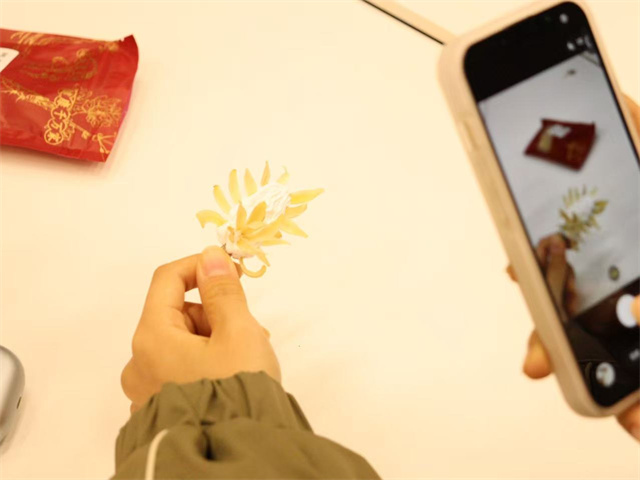 没有冗长的说教,没有枯燥的背诵,唯有“造物中识味”的沉浸与通透。有人为调试香囊配方,反复搭配陈皮与佩兰的比例,鼻尖凑在香囊口轻嗅,眉眼间满是认真;有人在发夹上勾勒简单的纹路,再嵌入一朵风干的玫瑰,暗红的花瓣虽失了新鲜时的娇嫩,却多了时光沉淀的温润,仿佛把一段冬日的记忆凝在了发间。当本草化作可佩可携、可赏可藏的生活美学,那些承载着千年智慧的传统文化,便卸去了厚重的外壳,像一片轻盈的羽毛,轻轻落在了青年的日常里。
