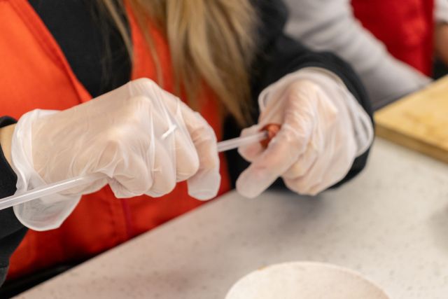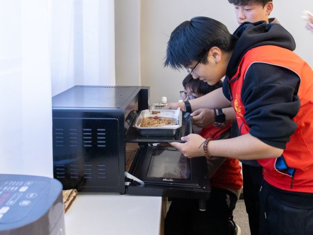 “枣熬的泥,就得用烤箱慢慢烤,才能锁住枣香!”一位参与者攥着传统糕模,拉着同伴加入烤箱队,“老辈人做枣糕,烤箱温度要盯紧,差五度口感都不一样!”。另一位同学盯着PPT 里电饭煲简化流程,果断组队:“试试用煮饭键做枣糕,说不定上课前就能搞定一份,让非遗变日常!”两种工具、两种思路,一场关于“传承与创新”的比拼,在枣香初飘的厨房里拉开序幕。
