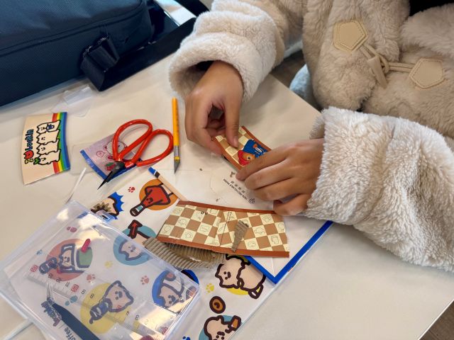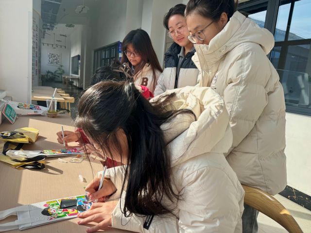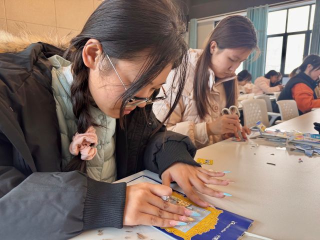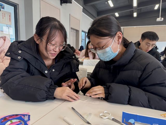 这不仅仅是一次手工体验,更是一场专注力与创造力的沉浸式培养。“活动教室里,剪刀轻叩桌面的声音、纸页翻动的细响、偶尔迸发的轻笑声,交织成宁静而温暖的氛围。一位参加者仔细粘贴手中的杯套,轻声说道:“在剪剪贴贴的一个多小时里,我完全忘记了明天要交的论文和即将到来的考试。”她举起完成的作品,眼里闪着光,“这种感觉太解压了,像做了一次大脑SPA。”