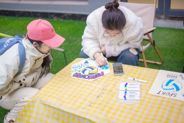 从涂鸦应援木板时的“动手实践+协作共创”,到“排球蹲”游戏中的“团队默契+极速反应”,再到展示区里的“创意分享+审美碰撞”,活动以轻盈灵动、贴近校园生活的方式,让排球文化突破传统边界,深度渗透进学子的青春日常。我们的初衷,远不止于组织一场涂鸦创作或趣味游戏——涂鸦是个性的张扬,排球是团队的凝聚,当潮流艺术与热血体育双向奔赴,我们希望参与者能在协作中收获创意落地的满满成就感,在互动中真切体悟排球运动的团队内核。不少同学曾觉得排球门槛高、有距离感,而这场轻松有趣的活动,恰恰搭建了一座桥梁:让大家直观感受排球的热血与温度,让涂鸦作品成为最鲜活的“应援嘴替”,替每一位参与者道出对排球的热爱与向往。