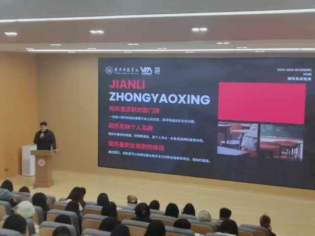简历作为求职的“第一块敲门砖”,其质量直接影响求职成功率。活动现场,学院辅导员解育一通过案例分析加现场答的形式,从简历结构、内容偏向、格式规范等方面,详细讲解了简历制作的技巧与禁忌,以“学生干部经历”“实习实践”“技能证书”等方面,指导同学们如何挖掘自身亮点,将平凡的经历转化为具有说服力的求职素材。帮助同学们提升简历制作水平,优化好求职的“第一块敲门砖”。