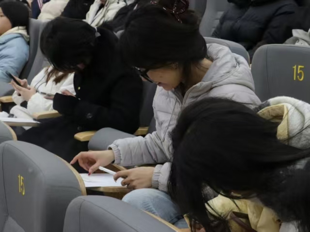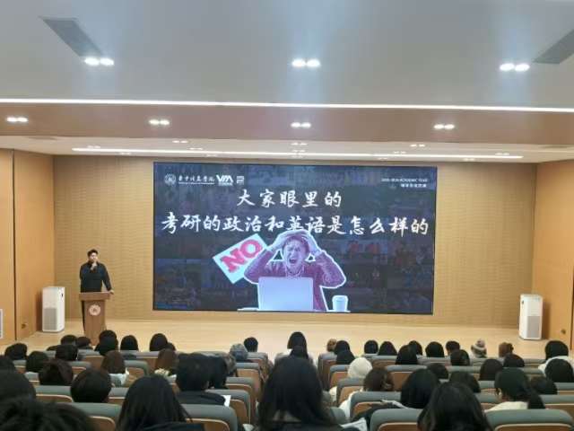 针对同学们高度关注的考研与考公两大发展方向,辅导员解育一围绕考研择校择专业、复习难点、备考心态调整,考研优势等核心问题,结合实际经验为同学们提供了针对性指导。他强调:“选择考研这条道路的同学们,要结合自身实力与职业规划理性选择院校和专业,制定科学合理的复习计划。”