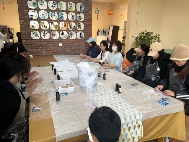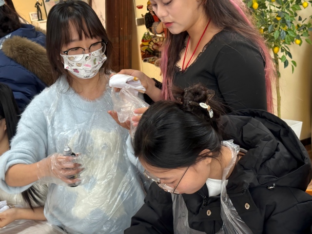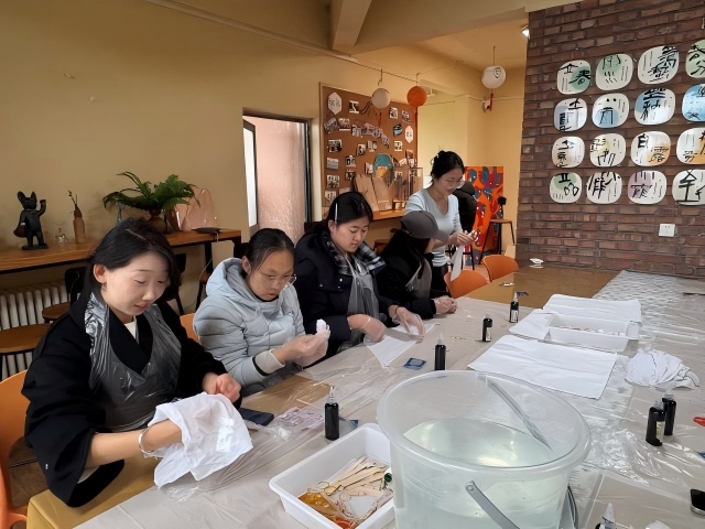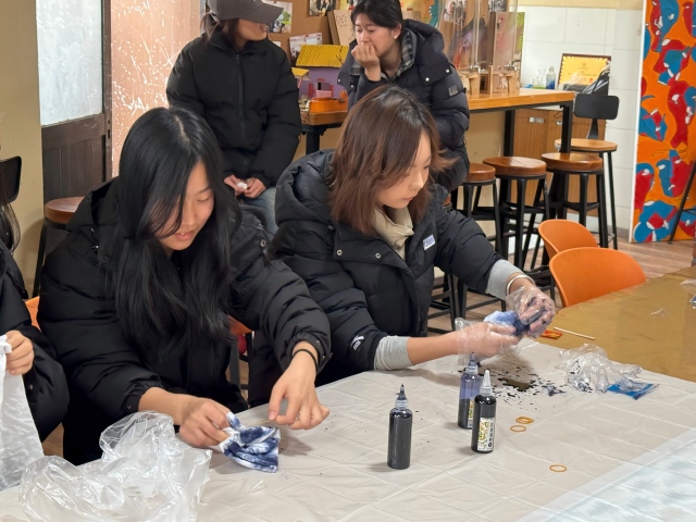 为传承国家级非物质文化遗产,让学生近距离感受传统手工艺的独特魅力,近日,晋中信息学院艺术传媒学院环设(专升本)2502 班在太行书院 112 漫趣・拾光轻家宴成功举办 “染韵匠心・班聚拾光” 扎染实践活动。全班同学齐聚一堂,以纱为纸、以染为墨,在亲手创作中解锁非遗技艺,在协作交流中凝聚班级温情。