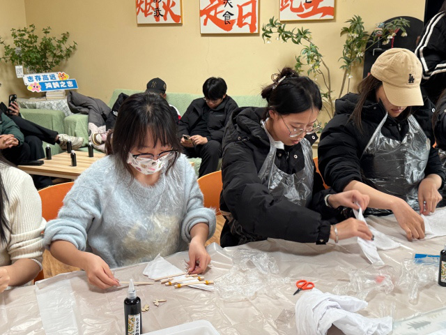 李会芳老师表示,异科交流不仅是知识的传递,更要搭建情感联结的桥梁。“扎染是指尖的非遗技艺,更是心灵的治愈之旅,希望通过这样的活动,让传统美学在一针一线、一染一晾中融入生活,让艺术创意伴着青蓝韵味尽情发光。”