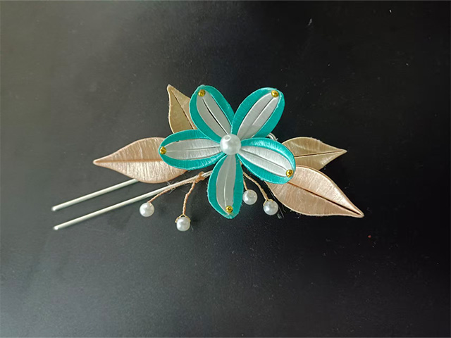 作为参与者,杨超羽凭借扎实的缠花创作功底全程投入实践,在掌握双套结、叠层缠绕等进阶技艺的同时,深刻体悟到缠花“以线代墨”的美学哲思。活动尾声,师生协作完成现代缠花作品,将跨学科思维融入设计,使古老技艺与当代审美碰撞出别样光彩。