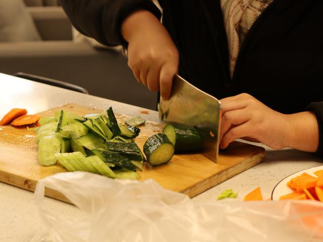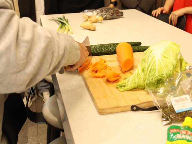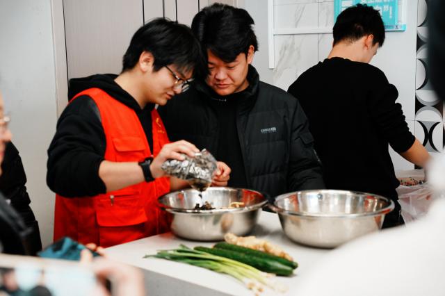 清洗白菜的清脆水声、切配辅料的细致专注、调配料汁时的认真斟酌……右岸厨房里,每一步都流淌着合作的暖意与探索的乐趣。选择“微辣”或“特辣”的小组,更围绕着辣椒的品种与投放比例展开了热烈讨论。大家戴上手套,将充分揉搓入味的白菜层层码入盘中,动作由生疏渐至熟练。当最后一勺料汁注入,参与者们仿佛亲手为一段风味之旅按下了启动键,眼中满是对未来“酸香”成果的憧憬。