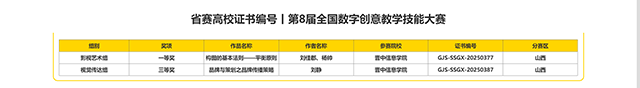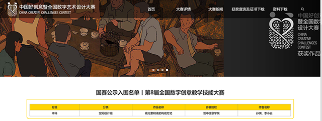 近日,第八届全国数字创意教学技能大赛成绩揭晓,艺术传媒学院教师凭借扎实的专业素养和创新的教学理念脱颖而出,孙琪、李小云教师团队的《线元素和线的构成方式》凭借独特的教学视角、新颖的教学模式和出色的教学效果,成功入围国赛,有望在全国舞台上展现学院的教学风采;刘佳郡、杨帅、刘静三位老师凭借优秀的表现分别荣获省赛一等奖与三等奖。