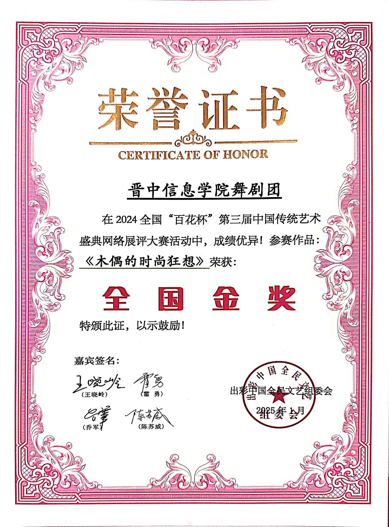 2024全国“百花杯”第三届中国传统艺术盛典大赛 全国金奖 王华、任珊雨